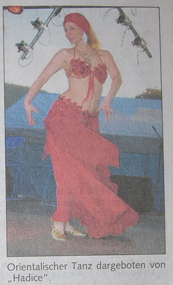 »» Auftritte «« Für Ihre Veranstaltungen biete ich Ihnen ein persönlich zusammengestelltes Programm. Hier ein Einblick in mein umfangreiches Repertoire: • Raqs sharki (Orientalischer Tanz, klassisch oder modern) • Balady (ägyptischer, folkloristischer Tanz) • Schleiertanz • Stocktanz (folkloristisch oder modern) • Shamadan (ägyptischer Tanz bei dem, die Tänzerin einen Kerzenleuchter auf dem Kopf balanciert; traditionellerweise wird er auf orientalischen Hochzeiten getanzt) • Säbel- oder Schwerttanz (folkloristischer oder moderner Fantasietanz) • Korbtanz (Folklore) • Tambourintanz (Folklore) • Trommelsolo (der Höhepunkt jeder orientalischen Tanzshow, der Tanz zum Rhytmus der Darabukka) • unterschiedliche moderne Showtänze • auf Wunsch auch ein Tanz zu Ihrer Lieblingsmusik Auch in der Kostümwahl richte ich mich gerne nach Ihren Wünschen. Möchten Sie z.B. lieber bauchbedeckte Kostüme? Auch das ist möglich. Preise Der Preis eines Auftrittes richtet sich nach: Programm Anfahrtsweg Veranstaltungsart Bitte erfragen Sie den Preis für Ihre Veranstaltung telefonisch unter 05322 / 5 23 32, mobil 0175 / 20 60 50 8 oder per E-mail: hadice@hadice.de |